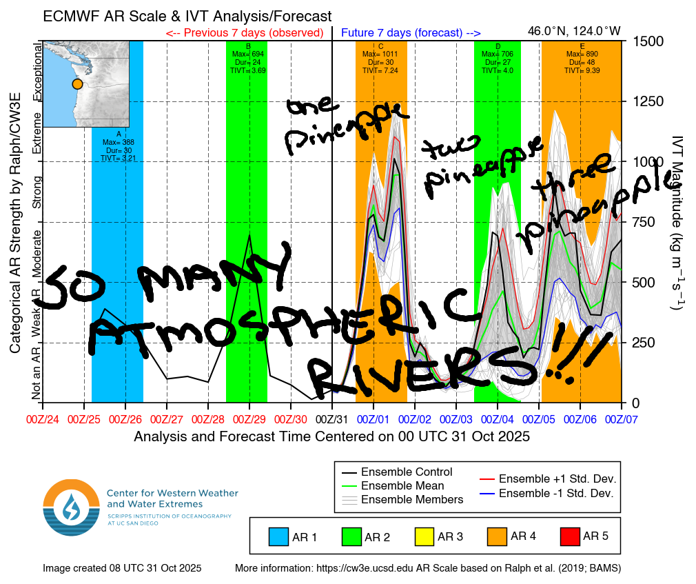 Hi friends! It’s Halloween, and another round of east wind is on tap. We do have a shot at westerlies late in the day on Saturday. Beyond that… not much on Sunday followed by east wind Monday and Tuesday. Models then drag us into a very active weather pattern with a series of atmospheric rivers and lows and all sorts of stuff. Details aren’t clear enough yet to pinpoint any possible wind, so I won’t try!