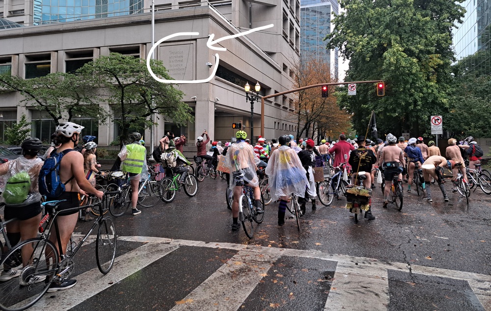 Enough clouds were out and about this morning to keep even Glenwood above freezing: 42 degrees there to start the day. Glenwood residents had their coffee in camelbacks today because they’re desperately scrambling to prepare for a very cold morning tomorrow. At least they have the option to wear clothes, just like the protesters in Portland yesterday: clothing optional bike ride. Know what those folks were protesting: Injustice in the form of ICE brutality; injustice in the form of military being deployed to oppress Blue cities; injustice in the form of oppression against trans, Black, Indigenous, POC, queer, female, disabled, and otherwise not White-cis-male-straight people. If you belong to that last category, please stand up and help the rest of us. Injustice anywhere is a threat to justice everywhere. (-MLK, seen on the building in the photo)