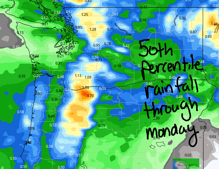 Good morning, neighbors! Looks like fall is here. Autumn. The beautiful creature with the changing leaves and changing weather and โฆ yes… even some rain! Rain totals through Monday morning (after which we’ll have a few dry days) look significant all the way out into the desert. Bye, fire season. Hello explosion of wild mushrooms!