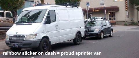 If you are curious about other aspects of White Sprinter Van life, feel free to shoot me an email, and I’ll try to incorporate that information here. If you’d like to submit a photo of a WSV, I would welcome that, especially if those photos are from anywhere outside the Gorge. Please take photos in horizontal orientation with some space around the WSV, as photos will be cropped to 480×200. Include the location of the photo and your name so I can give you credit.